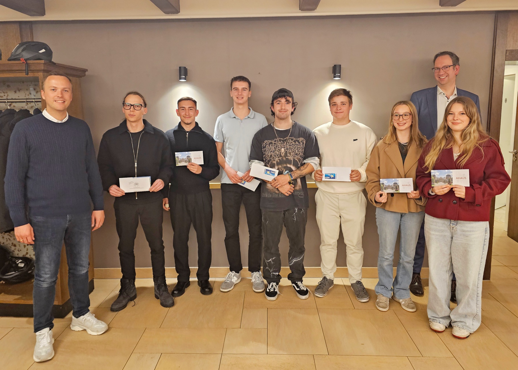 International Trading Office: BWV-Siegerteams ausgezeichnet: 25 Schülerinnen und Schüler der Klasse HHUI2 im Bildungsgang Zweijährige Berufsfachschule (Höhere Handelsschule) nahmen mit 13 Firmen des BWV Ahaus beim ITO-Projekt 2024 teil. Beim „International Trading Office“ handelt es sich um eine interaktive Handelssimulation in englischer Sprache für Schüler von kaufmännischen Berufskollegs aus drei europäischen Ländern. Nach Auswertung aller Projektergebnisse wurden nun die drei erfolgreichsten Ahauser Schülerfirmen ausgezeichnet. Den ersten Platz belegten Annika Quelle und Laura Kaute-Isfort mit ihrem Unternehmen Modern Deco, das sich auf den Verkauf und Vertrieb von Dekorationsartikeln für den Haushalt spezialisiert hatte. Auf dem zweiten Platz landeten Elias Sitkiewicz und Jonas Laukamp. Ihre Firma Lamitz KG bot Soundsysteme und Stereoanlagen an. Platz drei belegten Danilo De Benedictis und Gerrit Hemker mit New Life LED, die verschiedene LED-Beleuchtungssysteme im Angebot hatten.