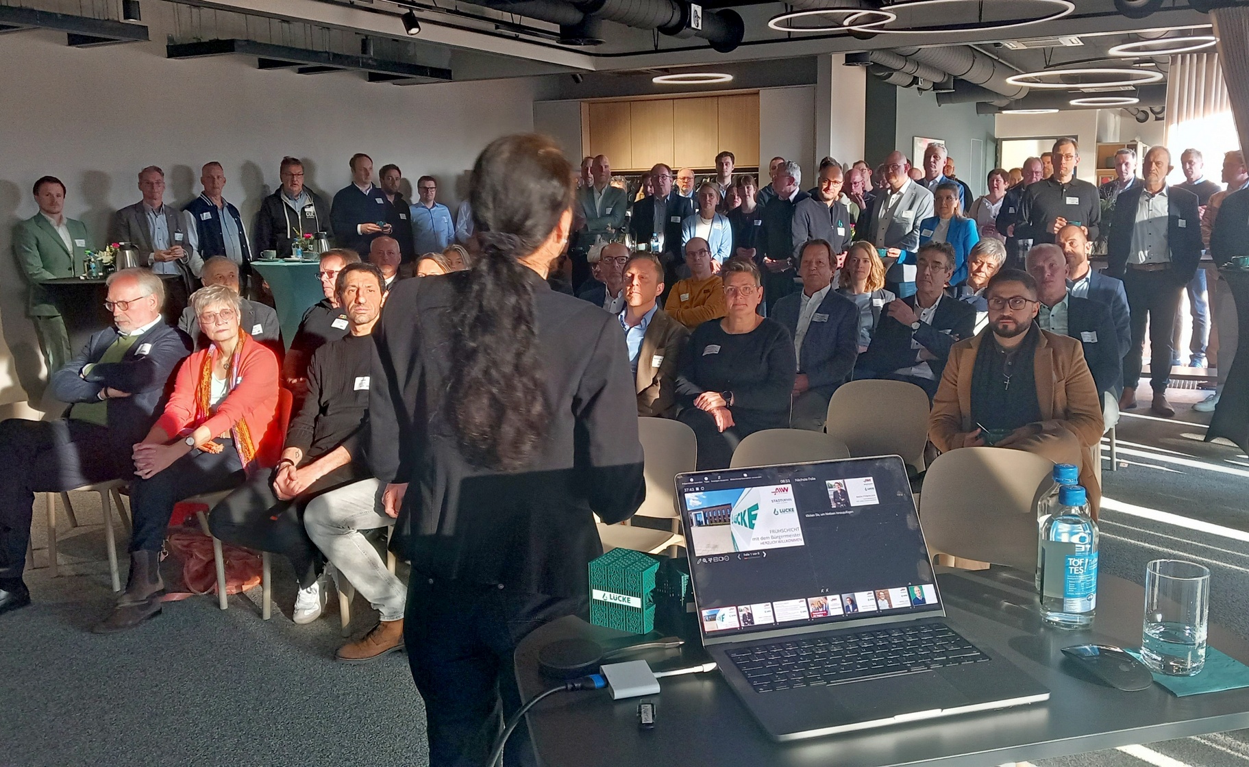 Bei strahlendem Sonnenschein wurden die Gäste in den neuen Veranstaltungsräumen der Lücke GmbH in Stadtlohn begrüßt. Der multifunktionale Bereich bietet alle Möglichkeiten für interne Meetings, aber auch für größere Anlässe wie unsere „Stadtlohner Frühschicht mit dem Bürgermeister“. Mehr als 90 Gäste nutzten heute die Gelegenheit die besonders angenehme Atmosphäre kennenzulernen.