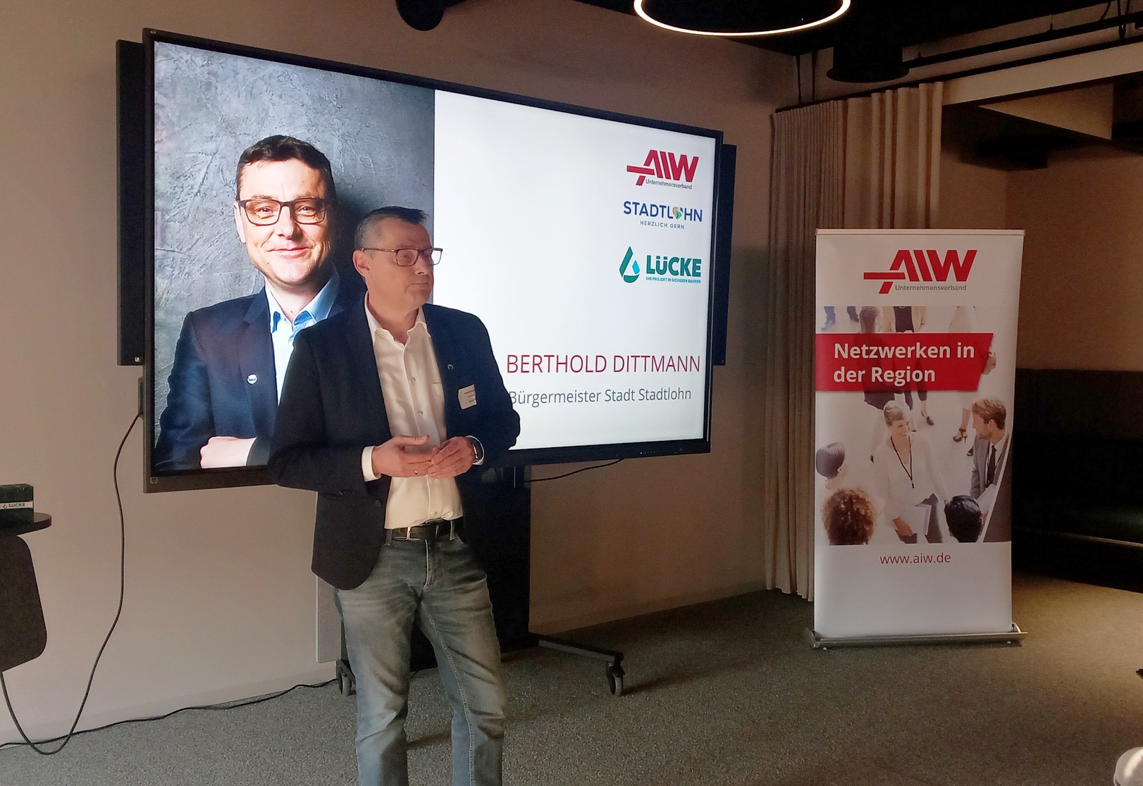 Inken Steinhauser, Geschäftsführerin im AIW Unternehmensverband, begrüßte die Gäste und betonte die Bedeutung solcher Netzwerkveranstaltungen und wie wichtig die Kooperation mit der Stadt und dem Stadtmarketing für die AIW-Community ist. Nur wenn sich die lokalen Akteure vernetzen, kann ein starker Wirtschaftsstandort wie Stadtlohn auch erfolgreich bleiben.