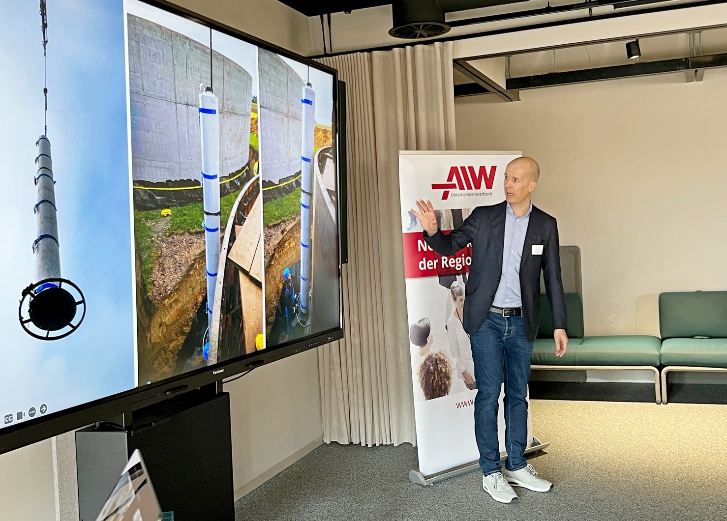 Schließlich übernahm Hendrik Lücke, Geschäftsführer, LÜCKE GmbH, das Wort und stellte das Unternehmen in seinem Vortrag „Ihr Projekt in sicheren Bahnen– 40 Jahre Folien- und Abdichtungen von der Lücke GmbH“ vor. Was vor 40 Jahren als kleines Unternehmen in einer Garage begann, hat sich zu einem renommierten Anbieter in der Folien- und Abdichtungsbranche entwickelt. Die LÜCKE GmbH verfügt heute über rund 30.000 m² Produktions- und Lagerfläche. Mit einem Team von über 80 Mitarbeitenden ist das Unternehmen zu einem ganzheitlichen Servicepartner und Fachanbieter für hochwertige, zertifizierte Abdichtungs- und Schutzlösungen gewachsen. Die Einsatzbereiche reichen von Regenwassermanagement und Umwelttechnik über Industrie, GaLaBau bis hin zur Agrarwirtschaft. Das Leistungsspektrum umfasst sowohl die fachkundige Beratung und Konfektion, als auch die Installation innovativer Produkte und Abdichtungssysteme.